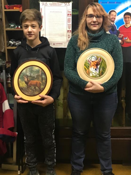 Strohschiessen 2019Die Trophäe in der allgemeinen Klasse entschied Karoline Ammann mit einem 53-Teiler klar für sich. Markus Neugirg hatte genau 100 Teiler mehr zu verbuchen, Thomas Ammann schoss einen 183-Teiler. Bei der Jugend wurden nur die Zehntelringe hinter dem Komma gewertet. Hier gewann Kerim Isik mit 28 Punkten vor Yasmine Mc Neely (20) und Vanessa Naber (19). Viel knapper ging es bei den Senioren zu. Bernd Wagner entschied hier das Rennen mit einem 61,1-Teiler vor Maria Roderer (67,0-Teiler) und Karl Beer (75,2-Teiler) für sich.